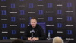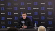 DURHAM, NORTH CAROLINA - SEPTEMBER 27: Head coach Jon Scheyer of the Duke Blue Devils speaks to the media about the development of Tyrese Proctor and how he plays with an edge during Duke Men's Basketball Media Day at Cameron Indoor Stadium on September 27, 2024 in Durham, North Carolina. (Footage by Lance King/Getty Images)