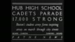 Title card: "Hub high school Cadets parade 17,000 strong - Boston's student army forms inspiring array on march through city streets" / two shots of Cadets marching in formation down street during the Boston School Boy Cadet parade / Boston Mayor James Michael Curley and his daughter watching parade / crowd watching Cadets marching by in formation / shot from moving vehicle of Cadets marching down street in formation / crowd watching / shot from moving vehicle of Cadets marching towards Massachusetts State Capitol / Cadet color guard marching past camera / official and officers in reviewing stand taking off hats / Cadets marching in formation down street / crowd watching Cadets marching by / shot from moving vehicle behind Cadets as they march down street in formation / crowd watching / Cadets marching down street in formation / shot from moving vehicle of Cadets marching towards Massachusetts State Capitol / Note: exact day not known
