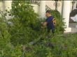 Hurricane Floyd; Hurricane Floyd; LMS Man cutting hurricane felled tree with axe GV People clearing branches & debris from street GVs Roof hanging from damaged building (3 shots) (aftermath = 11 secs) i/c TX 16.9.99/NN