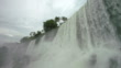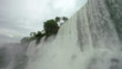 Wide shot panning and tilting up to show miss and water cascading down Iguacu falls on an overcast day ion Iguacu National Park, Argentina. Captured with Arri Alexa camera.