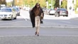 MUNICH, GERMANY - OCTOBER 16: Influencer Annette Weber, wearing a brown turtleneck by Max Mara, a big scarf by COS, beige leatherjogging pants by Brunello Cuccinelli, a light brown bag by Max Mara, brown loafers by Gucci, sunglasses by Isabel marant and a chain by Ariane Ernst, during a Streetstyle shooting at on October 16, 2021 in Munich, Germany. (Footage by Streetstyleshooters/Getty Images)