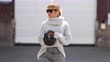 DUSSELDORF, GERMANY - JUNE 04: (SLOW-MO) Influencer Gitta Banko wearing a grey oversized cashmere knitted turtleneck pullover by Simone Bruns, grey double waist layered pants by Boscana, a dark brown mini Jodie bag by Bottega Veneta, sunglasses by Bottega Veneta and beige and black slippers with logo print by Fendi during a street style shooting on June 4, 2021 in Dusseldorf, Germany. (Footage by Streetstyleshooters/Getty Images)