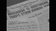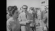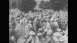 Title card: "Iran, Morocco in the Headlines" / high angle crowd of people and small tents or shelters in square / MS from behind Berbers climbing down from top of bus / group of Berber tribesmen walking next to wall / MCU Haji Thami El Glaoui, pasha of Marrakech / high angle crowd in front of Pasha's Palace in Marrakech / CU crowd / high angle Pan crowd / MS In palace portico, man, surrounded by pashas, holds proclamation by Sidi Mohammed ben Moulay Arafa, uncle of Sultan of Morocco / Pan pashas and crowd bowing / MS Arafa (white beard, no glasses) sitting with other dignitaries / crowd in front of palace straining to see // Intertitle: "Iran" superimposed over huge crowd in street in front of bldg / crowd / Iranians rioting / VS oil wells / CU oil pipes / CU headlines about overthrow of Premier Mohammad Mossadegh / map of Middle East / Mossadegh at table with cabinet / CU Mossadegh / VS Mossadegh in bed reading papers // Intertitle: "Rome" superimposed over Shah Mohammad Reza Pahlavi and Queen Soraya with security at airport / VS Pahlavi and entourage walking tarmac at airport, photographers around them / huge crowd in Iran cheering and pumping fists in air / Note: exact day not known