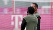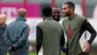 MUNICH, GERMANY - DECEMBER 8: Jonathan Tah (L) and Alphonso Davies of Bayern Munich attend training session ahead of UEFA Champions League against Sporting Club de Portugal at Football Arena Munich on December 8, 2025 in Munich, Germany. (Footage by Adam Pretty/Getty Images)
