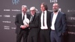 MADRID, SPAIN - DECEMBER 13: José Manuel Lorenzo, Alberto RodrÃguez and Rafa Cobos pose with the Best Fiction Series Award during the Jose MarÃa Forque Awards at Palacio Municipal de Congresos de Madrid on December 13, 2025 in Madrid, Spain. (Footage by David Benito/Getty Images)