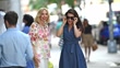 NEW YORK, NEW YORK - JULY 15: Julie Halston and Kristin Davis are seen on the set of "And Just Like That..." on the Upper East Side on July 15, 2024 in New York City. (Footage by James Devaney/GC Video)