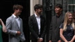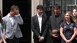 Formula One: Keir Starmer hosts F1 teams at Downing Street; ENGLAND: London: Westminster: Downing Street:EXTAlex Albon (F1 driver for Williams), Esteban Ocon (Haas F1 driver) and Oliver Bearman (Haas F1 driver) outside No 10 Downing Street for photocall with apprenticesF1 cars in front of group