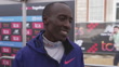 London Marathon 2023: Kelvin Kiptum, Sifan Hassan and Sir Mo Farah interviews / GVs of masses finishing; ENGLAND: London:INT Kelvin Kiptum (Kenyan long-distance runner/winner of men's race) interview SOT- Feels very happy / didn't know he was on for course record.