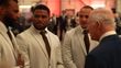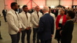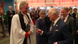 King visits RAF Northolt for 80th anniversary of Mission Aviation Fellowship; ENGLAND: London: RAF Northolt:INTKing Charles III greeting The Venerable Dr (Air Vice-Marshal) Giles Legood (Chaplain in Chief of RAF) / King meeting members of Papua New Guinea community including Betty Palaso (High Commissioner) and Liam Horne, Jeremiah Simbekin, Sylvester Namo and Judah Rimbu (Castleford Tigers players)
