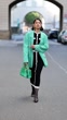 BERLIN, GERMANY - MAY 5: (SLOW-MO) Lea Naumann wears earrings Mango, black white striped button up dress Karl Lagerfeld, mint green blazer vintage, bag Prada Galleria special edition, socks Falke, heels Prada on May 5, 2024 in Berlin, Germany. (Footage by Christian Vierig/Getty Images)
