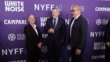 NEW YORK, NEW YORK - SEPTEMBER 30: (L-R) Lesli Klainberg, Ted Sarandos, and Eugene Hernandez attend the "White Noise" opening night premiere during the 60th New York Film Festival at Alice Tully Hall, Lincoln Center on September 30, 2022 in New York City. (Footage by Dia Dipasupil/Getty Images)