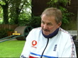 CRICKET WORLD CUP: DAY 1; ITN ENGLAND: London: Lords: EXT Seq Cricketers' hands signing autographs David Graveney (Chairman, England Cricket Selectors) interview SOT - Lots of people are milling around, they are portrayed as cricket lovers - asking questions which singly don't seem controversial but when put together can be influential LA Old Father Time weather vane turning GVs Spectators sitting in stands