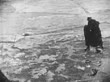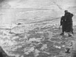 B/W 1920 man (Richard Barthelmess) running across ice floe / feature - stock video