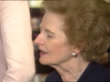 Margaret Thatcher attacks John Major again:; d)NAF (Britton,Adrian)ENGLAND: London: Piccadilly: Hatchards Bookshop:INTMS Margaret Thatcher (former PM) at desk at book signing holding copy of her book flanked by husband Denis Thatcher and unidentified man ZOOM IN (photocall)CMS PhotographersMS Thatcher with opened book on table as tells photographers what she's going to do SOTCS SIDE ThatcherCMS SIDE Thatcher signing book