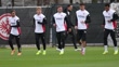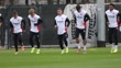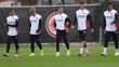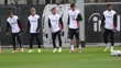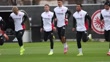 FRANKFURT AM MAIN, GERMANY - DECEMBER 8: (L-R) Marvin Dills, Ritsu Doan, Mario Goetze, Robin Koch and Jessic Ngankam of Eintracht Frankfurt warm up during training on December 8, 2025 in Frankfurt am Main, Germany. (Footage by Alex Grimm/Getty Images)