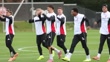FRANKFURT AM MAIN, GERMANY - DECEMBER 8: (L-R) Marvin Dills, Ritsu Doan, Mario Goetze, Robin Koch and Jessic Ngankam of Eintracht Frankfurt warm up during training on December 8, 2025 in Frankfurt am Main, Germany. (Footage by Alex Grimm/Getty Images)