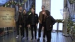 NEW YORK, NEW YORK - NOVEMBER 13: (L-R) Matt Musty, Hector Maldonado, Patrick Monahan, Butch Walker and Jerry Becker of Train visit The Empire State Building To Celebrate The "Drops of Jupiter: 25 Years in the Atmosphere" Tour at The Empire State Building on November 13, 2025 in New York City. (Footage by New Vision/Getty Images)