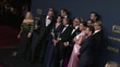 LOS ANGELES, CALIFORNIA - FEBRUARY 24: (L-R) Matthew Macfadyen, Kieran Culkin, J. Smith-Cameron, Scott Nicholson, Alexander Skarsgård, Dagmara Dominczyk, Zoe Winters, Fisher Stevens, Nicholas Braun, Arian Moayed, Alan Ruck, Juliana Canfield, David Rasche and Justine Lupe, winners of the Outstanding Performance by an Ensemble in a Drama Series award for 'Succession' pose in the press room during the 30th Annual Screen Actors Guild Awards at Shrine Auditorium and Expo Hall on February 24, 2024 in Los Angeles, California. (Footage by New Vision/Getty Images)