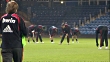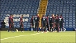 UEFA Cup: AC Milan squad training; More of Milan players stretching on pitchMid shot of Ronaldinho (AC Milan)More of Milan players training including Filippo Inzaghi, Andrea Pirlo, Gennaro GattusoCameramen filming training sessionLong shot of Milan players in huddleMore of Milan players trainingClose-up of floodlightMore of Milan players including Shevchenko, Pirlo, Inzaghi, Ronaldinho, Senderos