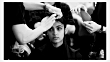 A model has their hair made up backstage at the Edward Crutchley fashion show during London Fashion Week Men's on June 9, 2018 in London, England.