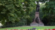 Monument of Felix Mendelssohn in a garden in front of the St. Thomas Church in Leipzig - 4K stock video