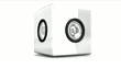 3d turning speaker in cubeshape with mirroring effects and clean black and white style