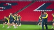 LONDON, ENGLAND - MARCH 25: Mykhailo Mudryk of Ukraine warms up with teammates as they practice during the Ukraine training session at Wembley Stadium on March 25, 2023 in London, England. (Footage by George Mattock / Getty Images)