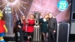 Nancy Cartwright, Mike Scully and Pamela Hayden, along with costumed characters, participate in the ceremonial lighting of the Empire State Building, turning the world-famous tower lights yellow in the show’s signature color.