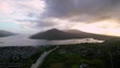 A drone video captures the grandeur of Neptune's Staircase at dusk, with the camera gliding over this engineering marvel and towards the sea. The soft evening light adds a tranquil ambiance to the scene, highlighting the staircase's impressive series of locks on the Caledonian Canal.