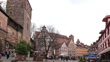 Nuremberg, Germany - November 29, 2024: Pedestrians at the Gärntentertor in Nuremberg. In the background the Zugbrunnen in Bergstrasse.