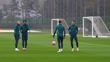 LONDON, ENGLAND - MARCH 11: Oleksandr Zinchenko, Gabriel Jesus and Cedric Soares of Arsenal warm up during a training session at London Colney on March 11, 2024 in London, England. (Footage by George Mattock/Getty Images)