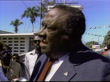 Haiti election: Opposition calls for boycott; HAITI: Port-au-Prince:EXTCS Logo of ballet box PULL OUT banner across street advertising election on 17 January 88CMS Election bannerGV Street hung with bunting as traffic alongCMS Leslie Manigat (Presidential candidate) INTVW SOF(thinks conditions prevail for a fair election)- "I think that -- elections"INTMS Press & TV cameramen gathered at pkf PAN R-L Presidential candidates who have withdrawn seated at table for pkf as Marc Bazin speaks SOFCMS Former candidateMS Bazin speaking seated next othersCMS Marc Bazin (Former Candidate) PKF SOF(Calling for peaceful strike on day before election)- "Is that going -- peaceful strike"Supreme CMS Judges file past L-R into court hearingCourt as bell sounds SOFCMS Judge seatedMS Duvalierist candidate stands appealing to judges seated in B/GMS Men listening to trialCMS Man listeningEXTTCMS Small half naked child lying on groundTMS Child on ground next women squatting sewing clothes amongst cloud fliesMS Pathway between rows shacks where poor live PULL OUT people to and froGV Shacks by pool water and sewage with children in F/GCMS Children squatting in mudMS Woman sitting in doorway preparing foodTCMS Naked child standing next others squattingCMS Ken Rees I/C SOFTX:15.1.88/12.30