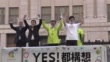 OSAKA, Japan : Osaka Gov. Hirofumi Yoshimura makes a speech in Osaka in support of the proposed restructuring of Osaka into a metropolis like Tokyo on Oct. 12, 2020, as campaigning starts for the Nov. 1 referendum on the proposal. (Kyodo)