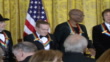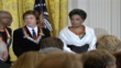 INT. PAN. A pan of the 2010 Kennedy Center Honorees standing on stage at White House Ceremony, including country singer Merle Haggard, composer lyricist Jerry Herman, dancer choreographer Bill T. Jones, musician singer Paul McCartney and talk show host Oprah Winfrey.
