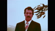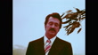 Panning view of landscape with buildings and hills; Rock Hudson with suit and tie standing next to a tree talking to the camera about Christmas Seals