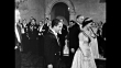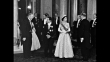 Queen Elizabeth II enters room with King Faisal II of Iraq / Elizabeth, Faisal and others standing / Elizabeth and Faisal walking / Queen Mother Elizabeth walking, followed by Princess Margaret and Philip, Duke of Edinburgh