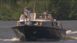 Queen Elizabeth II official visit: row over protocol; *** WARNING SOME FLASH PHOTOGRAPHY ***Queen being greeted with curtsey by Australia's governor general, Quentin Bryce EXTQueen (wearing lilac suit) along in boat across Lake Burley Griffin to the Floriade festivalWooden barge alongQueen on wooden barge with security men on jet skis besideENDS