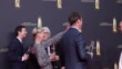 COLOGNE, GERMANY - SEPTEMBER 14: (SLOW-MO) Reinhold Elschot, Oliver Berben and other members of the cast pose with the "Bester Fernsehfilm" award during the German Television Award (Der Deutsche Fernsehpreis) at MMC Studios on September 14, 2022 in Cologne, Germany. (Footage by Christian Ender/Getty Images)