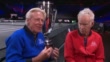 Roger Federer announces retirement after Laver Cup; ENGLAND: London: O2 Arena:INTInterview 2 shot John McEnroe (Captain, TeamWorld) and Bjorn Borg (Captain, TeamEurope) SOT on Roger Federer's (Tennis player) career compared to othersINTVarious Roger Federer (Tennis player) on court in O2 Arena practising for match at Laver CupINTInterview 2 shot John McEnroe (Captain, TeamWorld) and Bjorn Borg (Captain, TeamEurope) SOT on Roger Federer's (Tennis player) on fitness and condition of kneeINTGV of Laver Cup court with Roger Federer's (Tennis player) in practice match