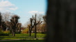 A row of trees in a park with a blue sky in the background - 4K stock video