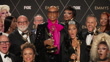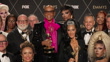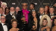 LOS ANGELES, CALIFORNIA - JANUARY 15: RuPaul (C) and winners of Outstanding Reality TV Competition for "RuPaul's Drag Race" pose in the press room during the 75th Primetime Emmy Awards at Peacock Theater on January 15, 2024 in Los Angeles, California. (Footage by Adam Jason Finmann/Getty Images)