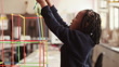 Schoolgirl with briaded hair assembling straws - 4K stock video