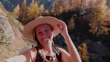Smiling Woman Hiking in Autumn Forest Trail - 4K stock video
