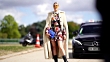 ARIS, FRANCE - SEPTEMBER 24: Sofie Valkiers wears a white fluffy coat, a multicolor dress, a blue bag from Dior, outside Dior, during Paris Fashion Week Womenswear Spring/Summer 2019, on September 24, 2018 in Paris, France. (Footage by Edward Berthelot/Getty Images)