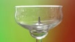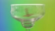 Thirty second HD video of three wooden and metal spinning tops spinning inside a glass with a moving rainbow background. No sound.