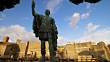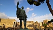 Statue of emperor Julius Caesar along Via dei Fori Imperiali at the Roman Forum in Rome, Italy - HD stock video