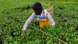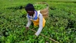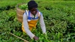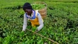 Kenya, Kericho county, Kericho, tea picker picking tea leaves