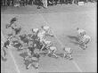 Texas A&M vs Fordham in Cotton Bowl / marching band forms the outline of Texas on football field / in the 1st quarter Texas A&M's kick is blocked and the ball is recovered by Fordham / Fordham executes the Statue of Liberty play / Fordham's Filipowicz scores first / Smith scores for Texas A&M after a 40 yard pass in the 3rd quarter / crowd goes wild / Texas A&M intercepts a pass / penalty on Fordham moves Texas A&M to the 1 yard line / Filipowicz passes in the 4th Quarter for a 1st down / Fordham scores a touchdown in the closing minutes.