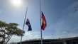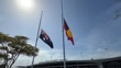 BALLINA, AUSTRALIA - DECEMBER 15: (EDITOR’S NOTE: Audio/music licensing is not included.) The Australian flag and the Aboriginal flag fly at half-mast outside Ballina Byron Gateway Airport on December 15, 2025 in Ballina, Australia. Police say at least 15 people and one suspected gunman were killed and more than a dozen others injured when two attackers opened fire near a Hanukkah celebration at the world-famous Bondi Beach, in what authorities have declared a terrorist incident. (Footage by James D. Morgan/Getty Images)