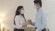 The longest goodbye between a smartly dressed beautiful young Indian couple wearing surgical masks at home during the quarantine lockdown of covid - 4K stock video